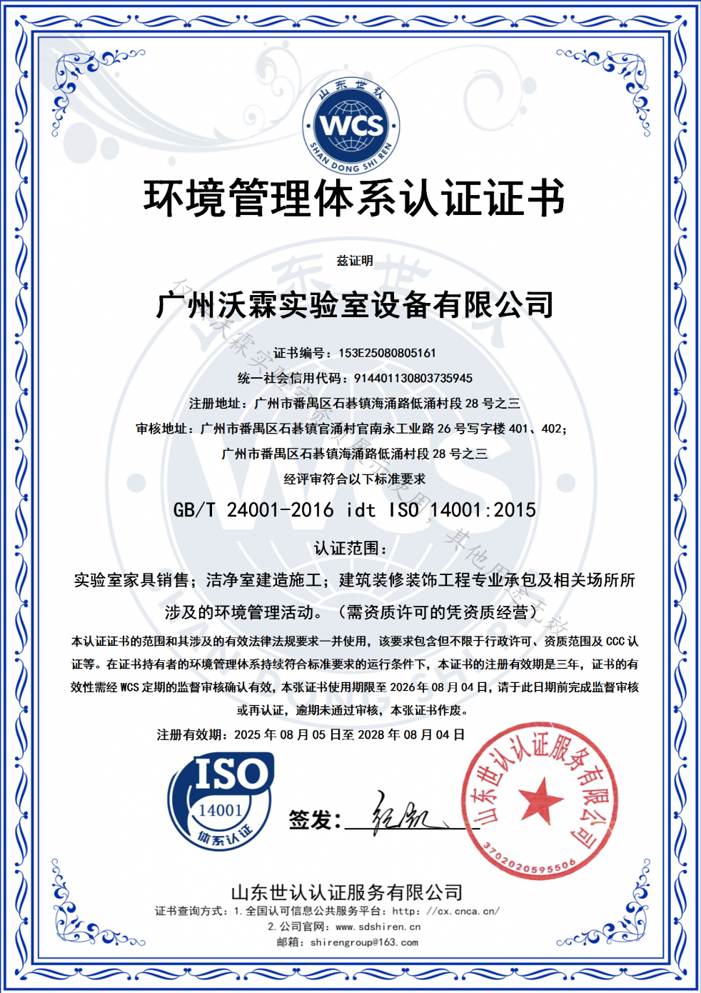 ISO14001環(huán)境管理體系認(rèn)證證書(shū)(2025-2028)