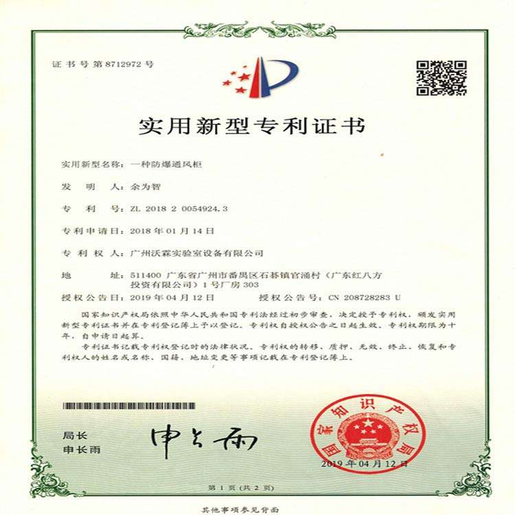 專利證書——防爆通風(fēng)柜