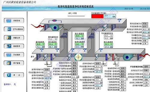 恒溫恒濕實驗室系統(tǒng)工程為了達到溫度濕度壓差的自動控制,為了實現(xiàn)功能控制系統(tǒng)采用DDC控制,裝設在回風管內(nèi)的溫度傳感器所檢測的溫度送往DDC控制器與設定點溫度相比較,用比例積分加微分控制,輸出相應的電壓信號,控制裝在回水管上的電動調(diào)節(jié)閥的動作,使回風溫度保持在所需要的范圍。裝設在送風管內(nèi)的濕度傳感器所檢測的濕度送往 DDC控制器與設定點濕度比較,用比例積分控制,輸出相應的電壓信號,控制電動蒸汽閥的動作,使送風濕度保持在所需要的范圍。裝設在回風管及新風管的溫度及濕度傳感器所檢測的溫/濕度送往DDC控制器進行回風及新風焓值計算,按回風及新風焓值的比例,輸出相應的電壓信號,控制回風風門及新風風門的比例開度,使系統(tǒng)節(jié)能。